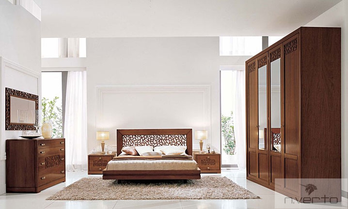 Cпальня «LAGO di GARDA» Новинка современной классики. Теплые тона орехового дерева и беленого дуба, прекрасная отделка и рисунок на нижнем рельефе придают этой модели особый характер и подчеркивают любовь к каждой детали.