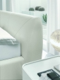 Кровать изготавливается в мягкой обивке, очень приятной на ощупь, из натуральной кожи, экокожи или ткани различных цветовых решений. По желанию клиента в кровать может быть установлен ящик для белья.