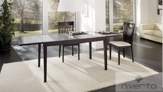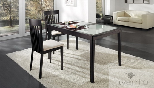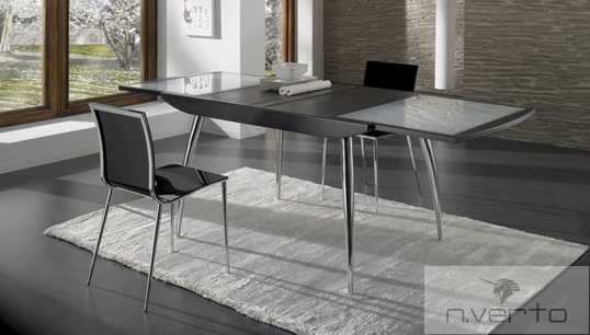 Cтол «Ginevra» итальянской фабрики «IdealSedia» .  Фабрика «IdealSedia» знаменита во многих странах мира благодаря широкому ассортименту качественной мебели и аксессуаров. Фабрика специализируется на изготовлении обеденных зон из стекла, металла, дерева, пластика и других материалов. В качестве обивки для столешниц и посадочных мест стульев используется ткань, кожа, экокожа различных цветовых решений.